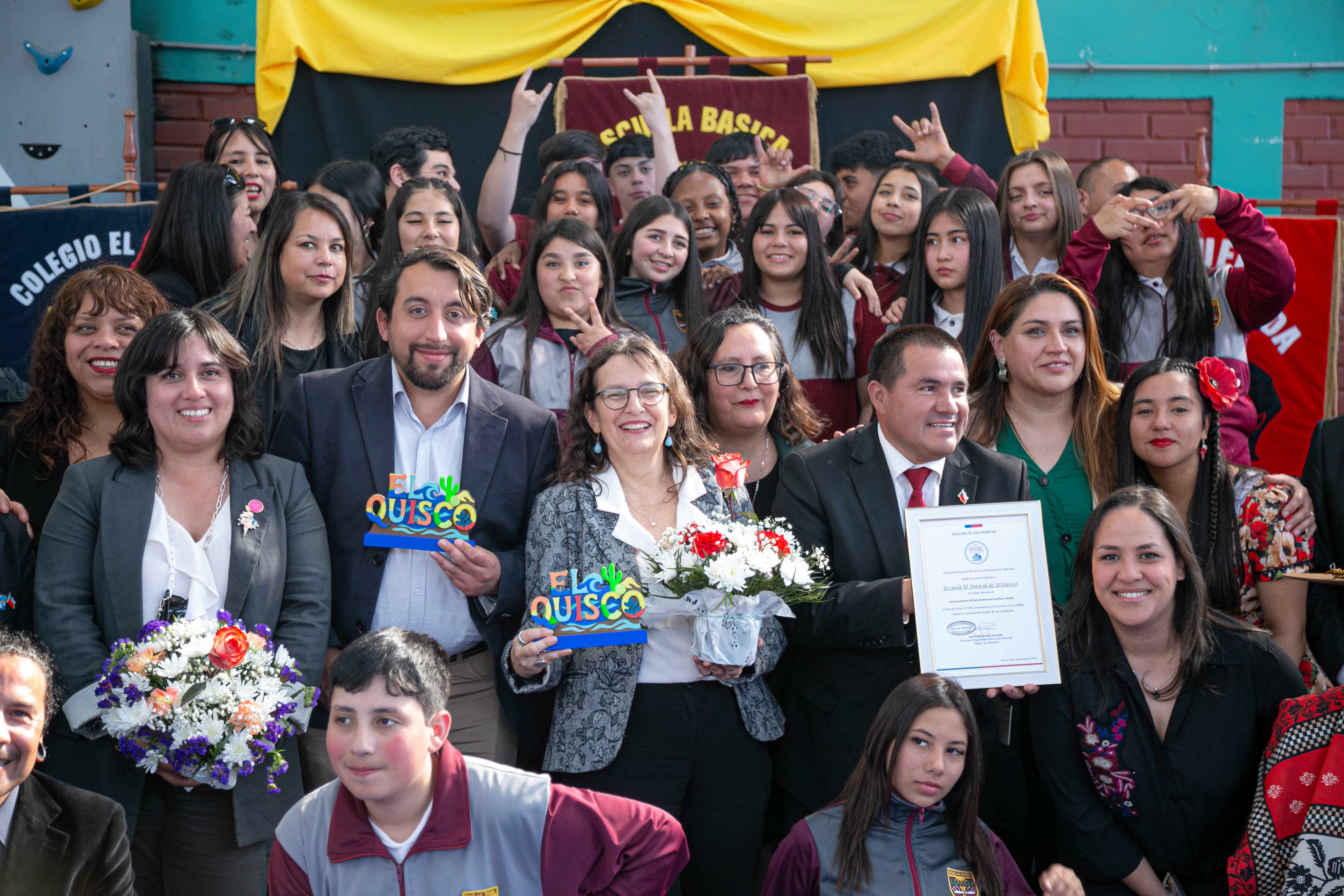 Posteriormente, las autoridades participaron en la ceremonia de entrega del Reconocimiento Oficial de la ampliación de la Escuela El Totoral, en El Quisco, que le permitirá contar con cursos de enseñanza media. El proyecto, incluyó la remodelación y construcción de nuevos espacios destinados a 1° y 2° medio, un laboratorio, baños con accesibilidad universal, asegurando continuidad de estudios para estudiantes del sector rural de la comuna.