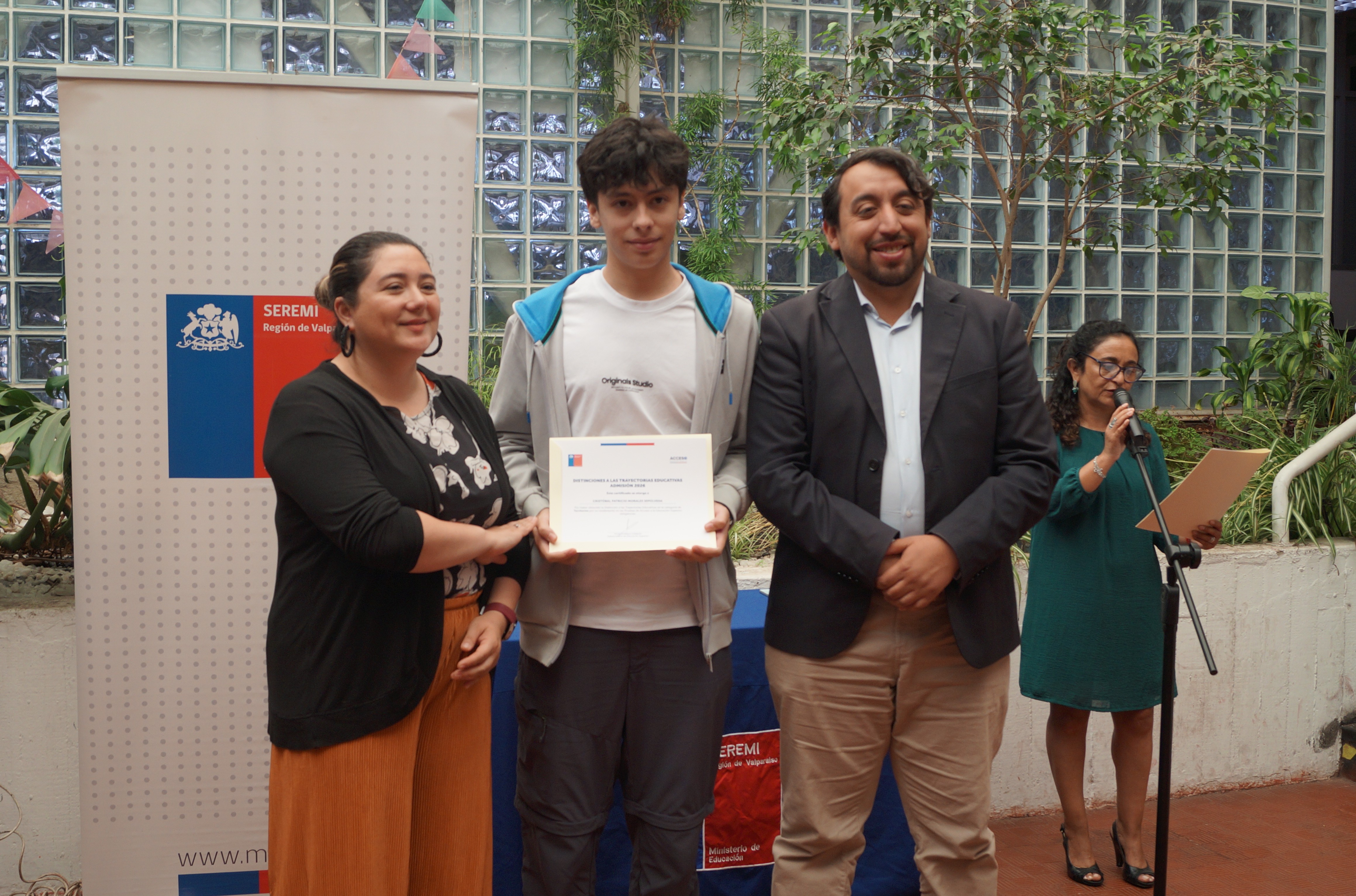 La actividad contó con la participación de estudiantes distinguidos junto a sus familias, quienes acompañaron este importante hito, además de autoridades regionales, entre ellas el seremi de Educación de la Región de Valparaíso, Juan Pablo Álvarez; la seremi de Gobierno, Carolina Zapata; el seremi de Ciencia, Tecnología, Conocimiento e Innovación, Rodrigo González; y la seremi de Desarrollo Social y Familia, Claudia Espinoza.